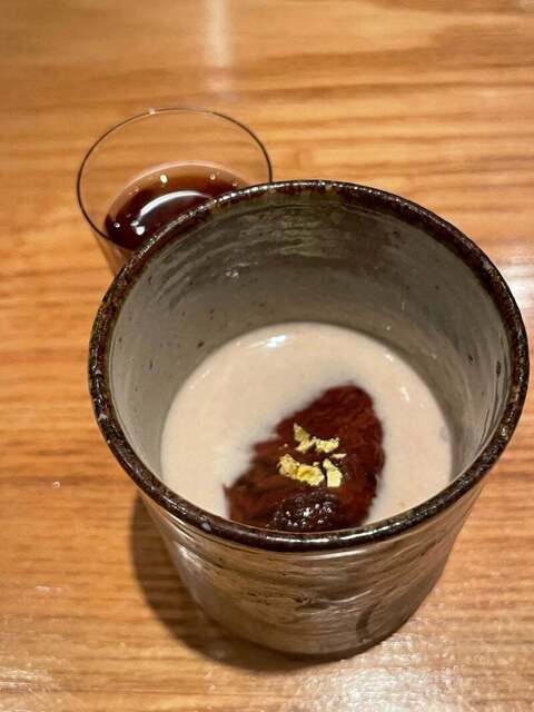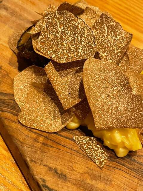 5皿目…トリュフが多すぎて全く中身が見えませんが、、、鮑ソテーと、筍リゾットが顔を出しました。