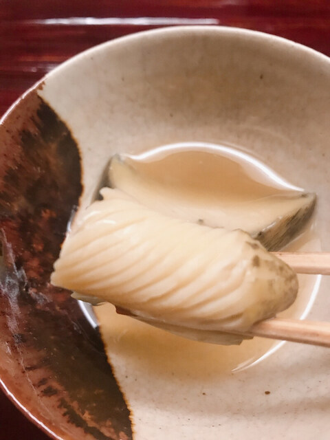 ・七尾赤貝、あおりいか、おろしちり酢、塩山葵