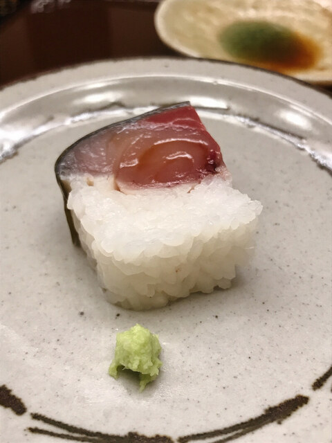 さよりの昆布締め、平目のお造り 割酢、塩山葵