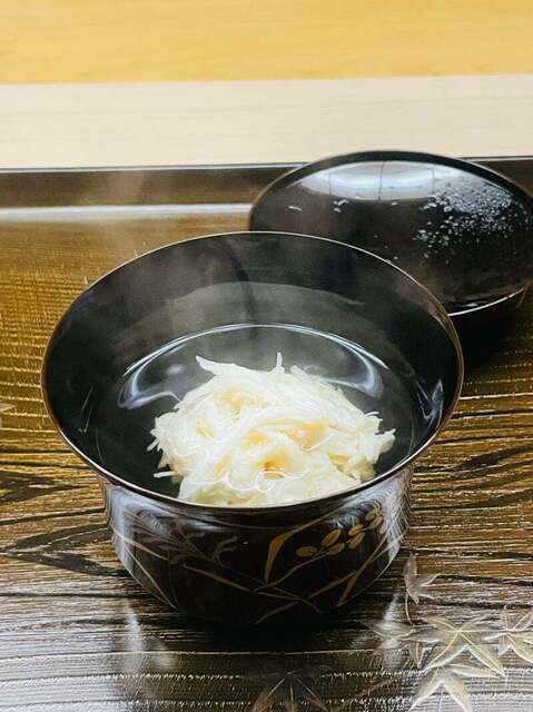 昆布と削りたての鰹節を惜しげもなく使い、この後の椀にも使うお出汁をまずは1杯飲ませてくださいます。