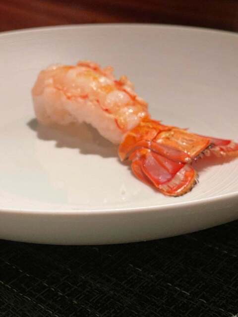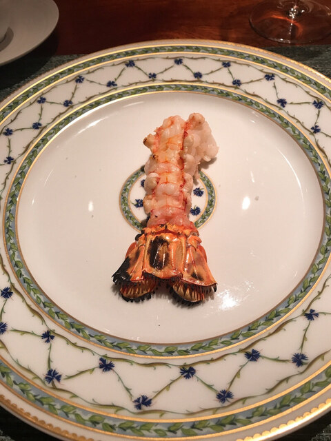 そして、今回のお料理の中で一番驚いたのがアカザエビの特大サイズのレア炭火焼き。