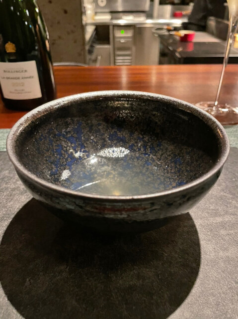 こんな風に頂く事ははじめてだったのですが、臭みがまったくないコリコリとした貝柱の食感と、キャビアの塩味、蛤出汁の旨味が見事にマッチング。