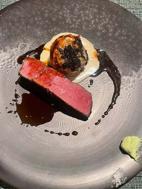 但馬玄の付け合わせは、雪ノ下ジャガイモのグラタンにたっぷりのトリュフ。