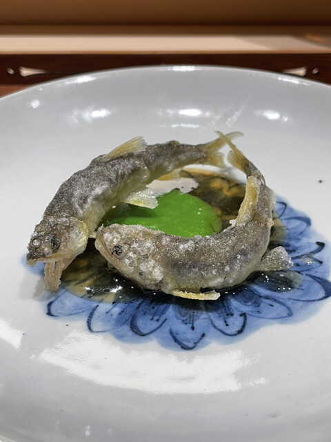 新銀杏のソースが魚を包み込んでいます。無花果もなめらかな胡麻のソースで素晴らしい。シャンパンに合いますね♡