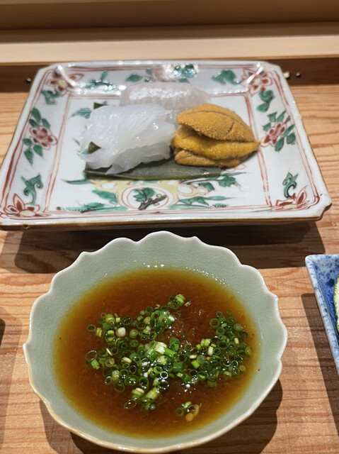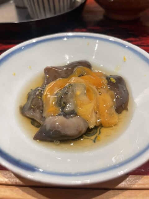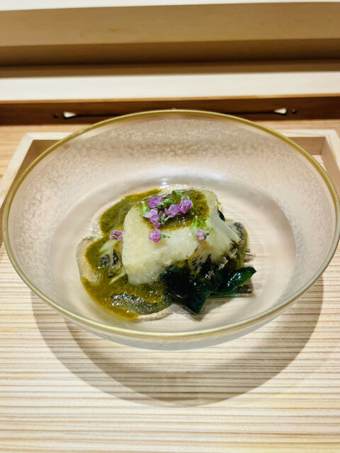 唐津の雲丹に、鮑の肝、ジュレをかけ、青柚子を振ってくれますが、悶絶です。