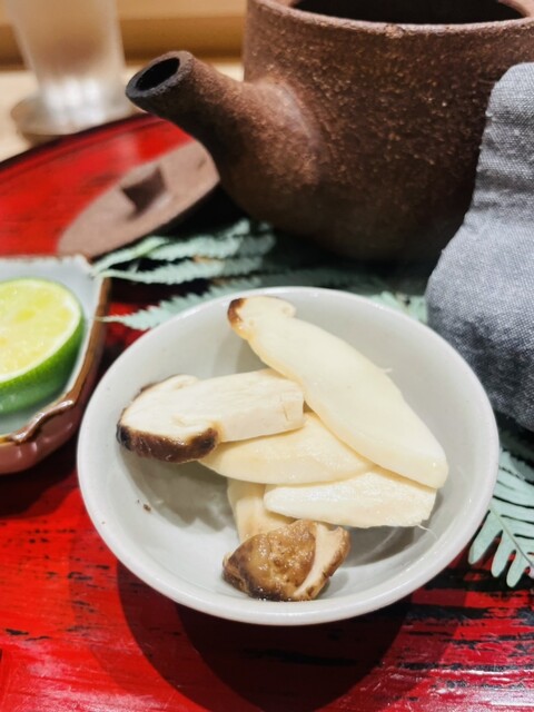 お出汁に国産北海道の初物松茸が!「初物ですので是非」と大将の気遣いに感謝です(;∀;)
