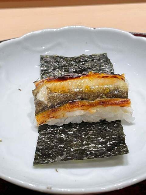 穴子寿司とは珍しい。フワフワの状態で海苔でまかないと崩れそうなくらい。