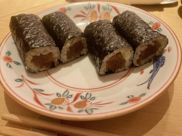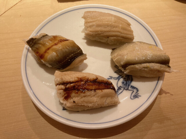 色々と見ていて気付いたのは、ネタによって煮切りを変えていたのと、白身でも真鯛と甘鯛で切り付けの厚さを変えたりといった工夫をされていることですかね。行くたびに発見があるっていいですよね(*´▽`*)
