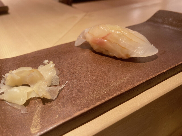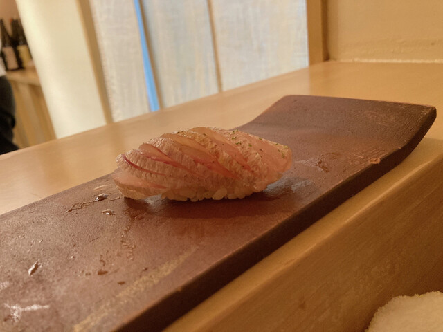 白身って見た目はどれも似ているのですが、魚種によって寝かせる期間を変えたり、塩でしっかり締めたりする事でそれぞれの魚種の良さを引き出し、香りや食感、旨みの違いを楽しませて下さいました。