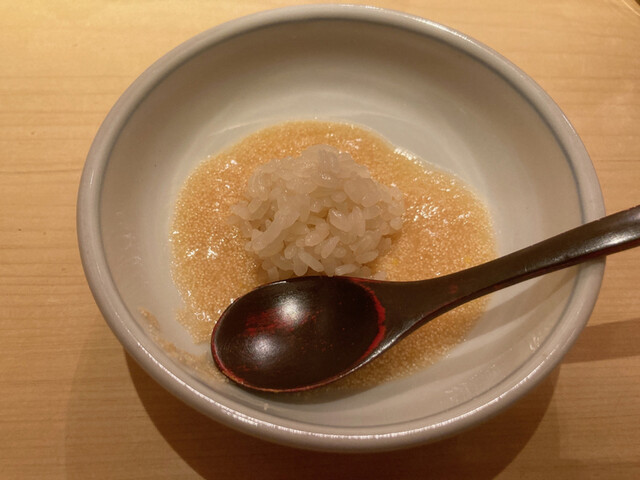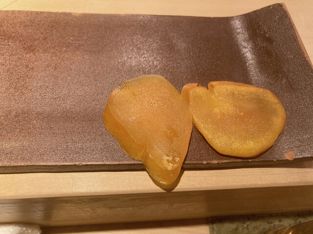 どれも高レベルで隙がない感じでしたが、魚種によってネタの切りつけの厚さや握りの硬さに変化をつけていて、咀嚼していくうちにふわっと鼻の奥に香りが上がってくるこの感じがやはりあい澤さんのお鮨だなと感じます。個人的には、平目の昆布締めとイサキがとりわけ良かったと思いました。