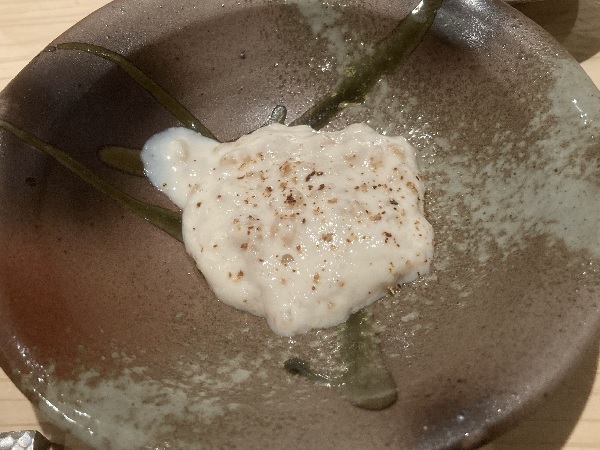 ●鮑リゾット風 酒蒸しした鮑と肝ソースを和えたもの。ほんの少し山椒粉が入っていて、いいアクセントに。