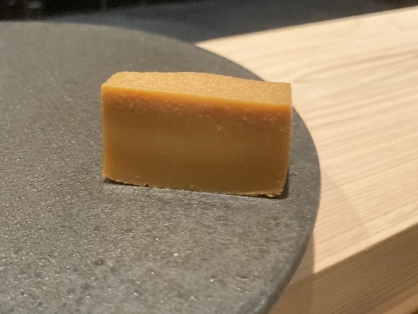 ★あん肝 → 80℃の温度帯で30分炊いたもの。甘すぎず、山葵が良いアクセントに。