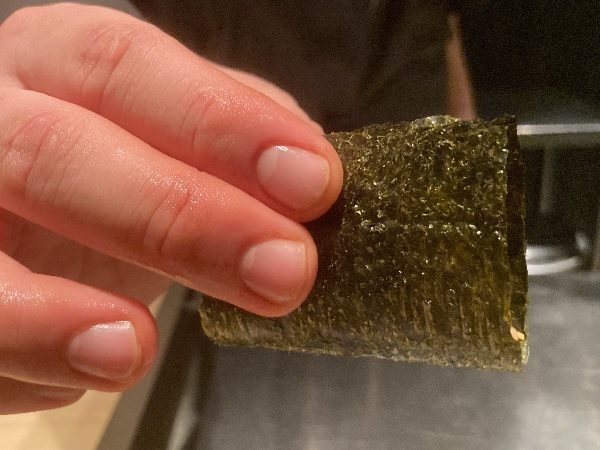 ●シャリと海苔をテイスティング 前回よりさらにシャリが硬く炊かれておりました。