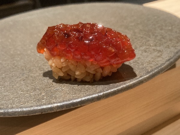 今回も、どれも素晴らしかったです。ネタの旨味が割と強い前半戦では硬めに炊かれたシャリを合わせ、雲丹くらいから前半のシャリより柔らかめのシャリを合わせていたように思います。でも、全体的にフワッと握られていたように感じました。数か月単位での訪問ですが、来る度に進化を感じられます(*´▽`*)