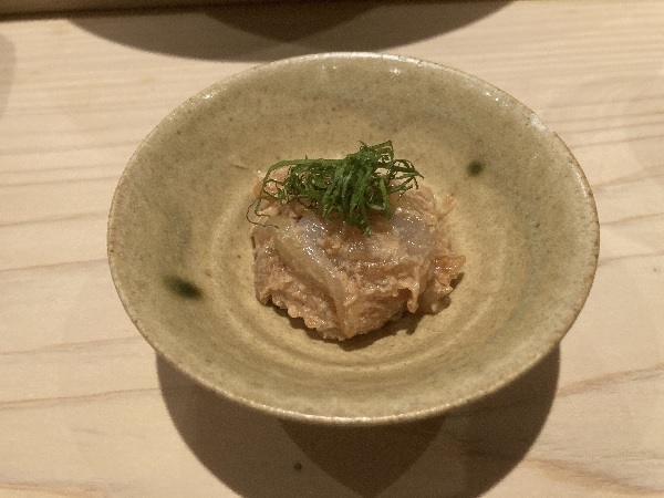 ★蛍烏賊のとも和え 低温調理してペースト状にした蛍烏賊と茹でた蛍烏賊を和えたもの。濃厚!