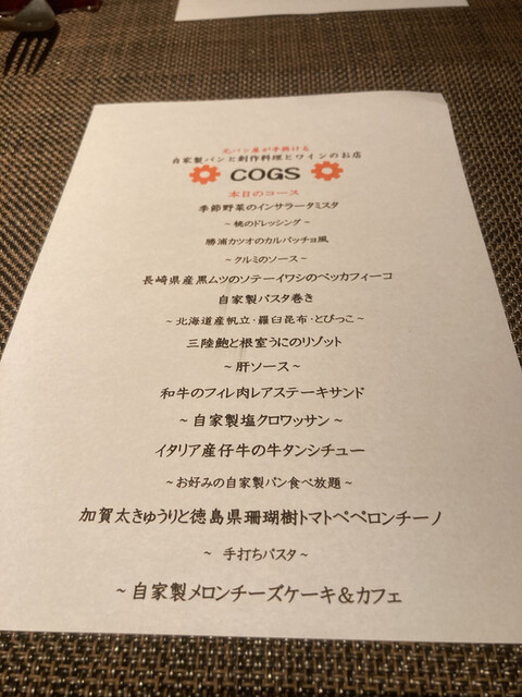 コグスダイニングさんは約2年前に初訪問して以来、不定期ではありますが年4回程のペースで通わせて頂いている我が家的にホームなお店の一つでございます。