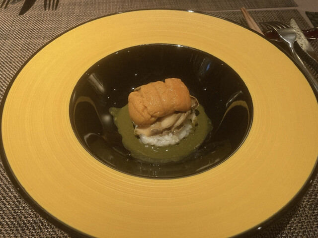 焼き固められたチーズリゾットやイクラの塩味と上からかけられた雲丹の甘味がメッチャ