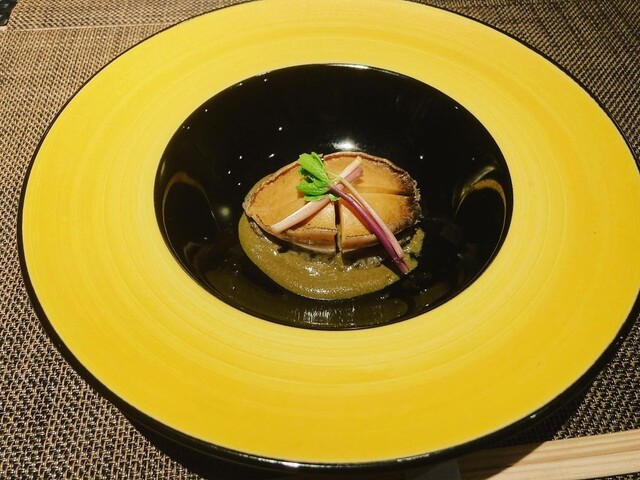 →手巻きに続き、鮨loverが好きそうな逸品が出て参りました。鮑自体の柔らかさと肝ソースの塩梅がまるで鮨屋さんのクオリティでしたよ。