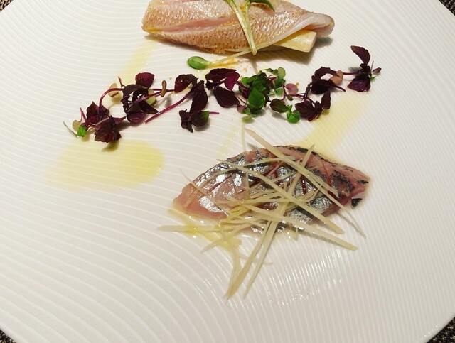 ●春子鯛のビネガージメ、島根県産鯵のカルパッチョ