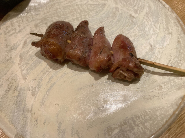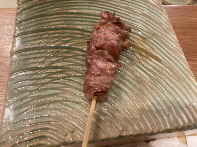 クレソンサラダ以降、一切野菜が登場しませんでしたので食べ飽きるのではなんて思ってしまいましたが、杞憂に終わりました。それぞれの部位の持つ香りや旨味、食感を焼き方でうまく調整して引き出されていたからでしょう。あと、素材に合わせた串の差し方も、美味しさの秘訣なんだろうな〜。