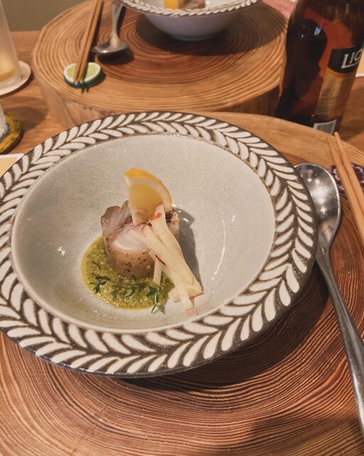 全体を通してスパイスは抑え目で、あくまで素材の味を引き立てるものとして使われており、パンチは無いけど五味の要素をコースの流れで上手く組み立てられ、物足りなさや食べ飽き感は皆無でしたし、むしろ箸が止まらない現象が発生してしまう程でした。全てを食べ終えた時の満足度も高かったです。ひょっとして、精進料理のコースを食べ終えた時ってこんな感覚なんですかね?独歩ちゃんの著書名である物足りなさを味わうとはこういう事なんでしょうか?でも、アタシ的にはバランス感覚に優れた丁度良い作品に感じました。パンチがあるお料理も嫌いではないですが、作り手の優しさが感じられる今回の作品もアタシは大好きです。