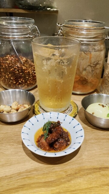 で、昨日のイベントの話をしていたんですけど、鮨職人の大山さん(@sushiya_magari)の成長っぷりがアタシ的には嬉しかったし、大山さんもアタシに褒められた!ってメッチャ喜んでいたとお聞きしまして、良かったなあって思いましたよ。そんな話をしながらいつものようにスパイスソーダと愉快な仲間たち(ナッツのテルダーラ、スパイスたまご、イイダコのアチャール)を注文してなんちゃって昼飲みタイムを満喫していたのですが、スパイスソーダも、愉快な仲間たちも全然飽きないなー。むしろこの世の中からこの4点セットが無くなったら凄いショックを受けそうだ。だからマリコさんにはアタシが生きているうちはお店やってて欲しいと勝手な事をいつも思っております。