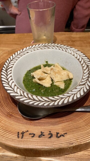 前回は夏に行われた独歩ちゃんイベントですが、今年はげつようびさんの2周年に合わせての開催となりました。去年は真夏の暑い日の開催ということもあってか、カレーの要素が随所に盛り込まれたお料理が中心でしたが、それでいてスパイスを上手く操って五味が感じられ、バランス感覚に富んだコースだったという印象でございました。
