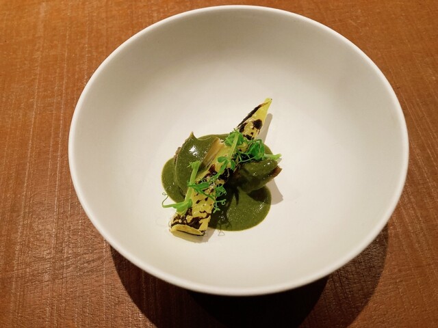 ⚫︎鮑 枝豆とグリンピース ヴァンブランの肝ソース