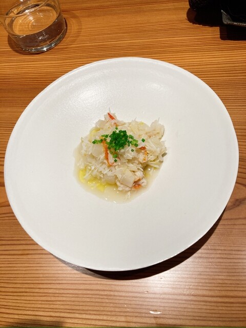 ●ズワイガニ、蕪餡、下仁田葱のリゾット