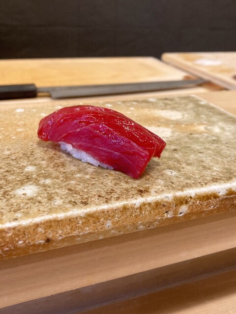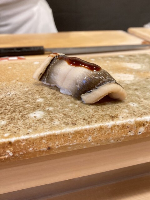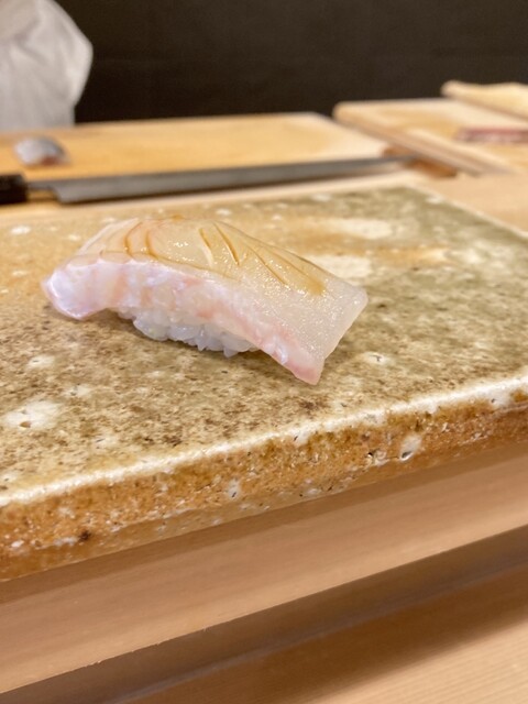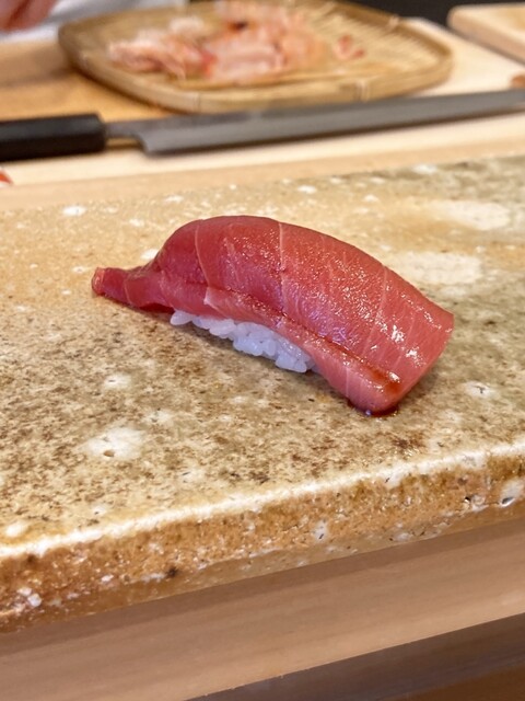 昨日みたいに2時間くらいお店の大将とお話しながらお鮨と向き合うのも楽しいですが、今日みたいにサッと来てさっと食べて帰るっていうのも粋でいいなと思った次第です。昔のお鮨屋さんが屋台だった事を考えるとね。こちらの大将は佇まいがピシッとされていて、こちらが話しかければちゃんとコミュニケーションは取れますが、基本あまり喋らない感じでした。個人的には色々お話ししてみたい派なのですが、お席が大将の真正面で、大将の手仕事を間近で見られて楽しかったからまあいいや。