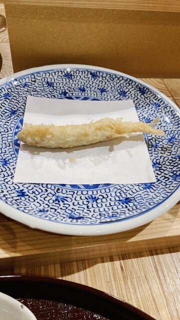 頭はどんつゆ、頭から下は塩で頂く。身の旨味と頭のほろ苦さが堪らない。