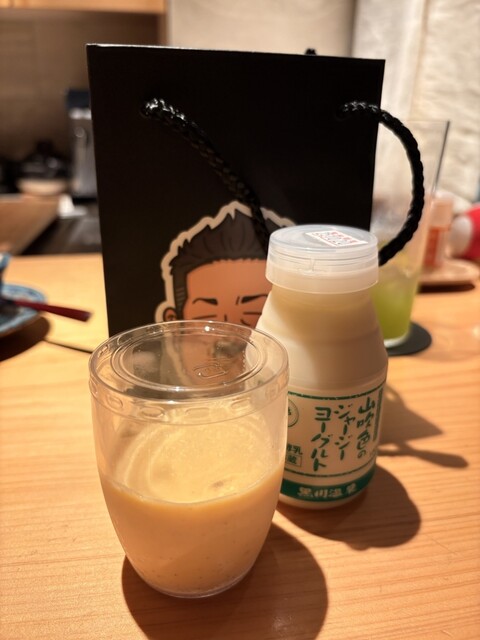 デザートの抹茶アイスで口の中をリセットしたら、いつもの楽しみが待っています。自家製プリンと南阿蘇の飲むヨーグルトのお土産 。この心遣いが、毎回通いたくなる理由の一つです。プリンは濃厚でなめらか、ヨーグルトは翌朝の楽しみに。