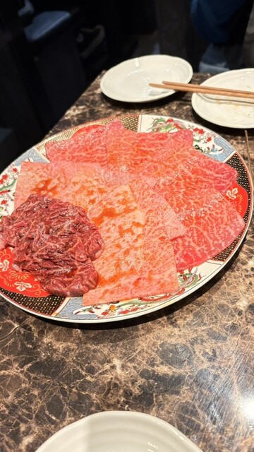 次に登場するのは【極上和牛のタレ盛り合わせ】。