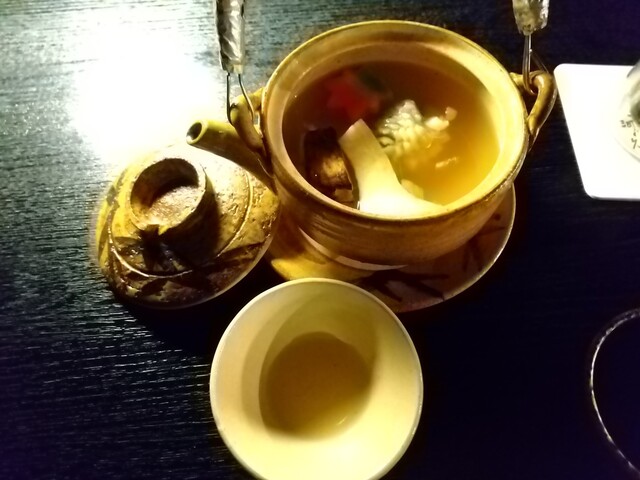 暖かい汁が体に染みます。松茸なんて何時振りだろう。ハモももちろん美味しい。良い出汁が出ています。京都ならではの一品ですね。