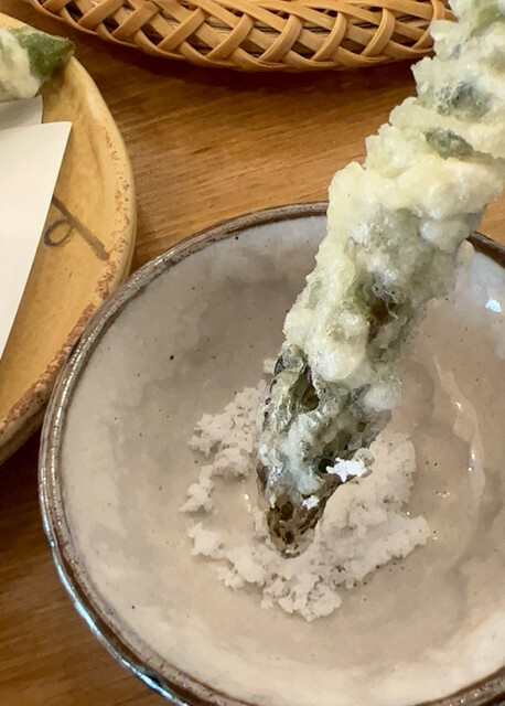 早速、旬のグリーンアスパラの天ぷらをお目当てに