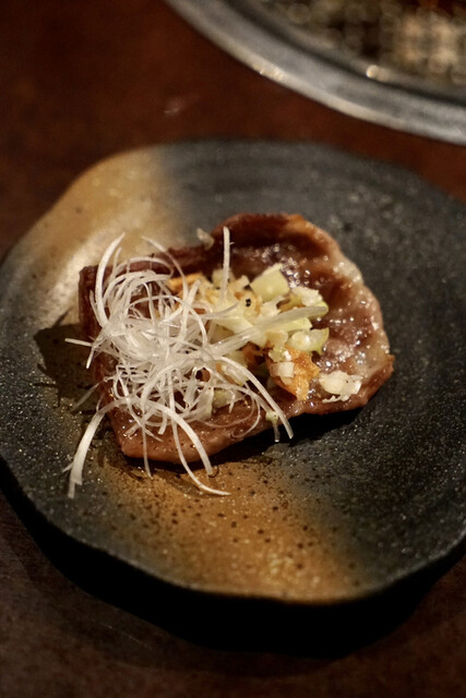 片面焼きで頂きました。手製のネギ塩ニンニク、白髪ネギと共に。