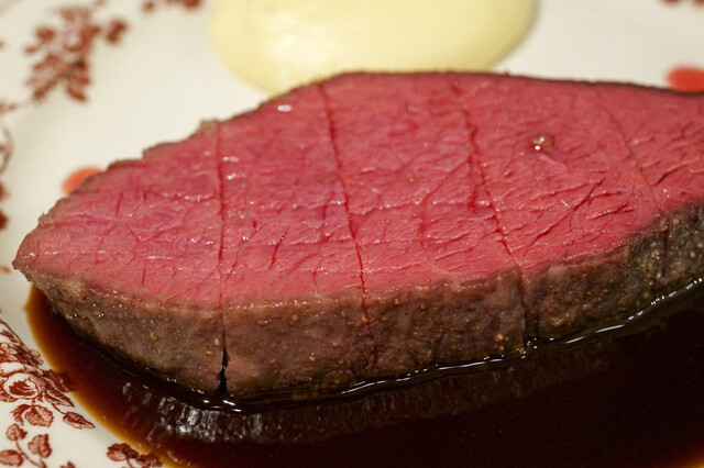 肉の食感をしっかりと感じられ、肉汁の甘みと赤ワインソースのほのかな苦味が重なり、噛むほどに美味しい一品。