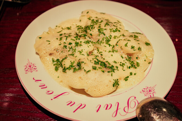 帆立貝のラヴィオリは、もっちりした生地に包まれた帆立の旨味が口いっぱいに広がる瞬間、思わず笑みがこぼれます。