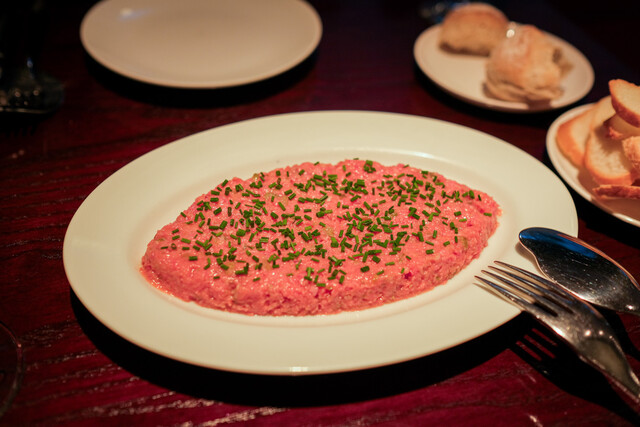 軽く火を入れた和牛のタルタルは、とろけるような食感で肉の旨味を感じられる一品。