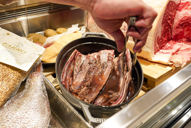 オーダーはオープンキッチンのカウンターに前菜コーナー、メインコーナーに置かれた料理や食材をチョイスすることができます。
