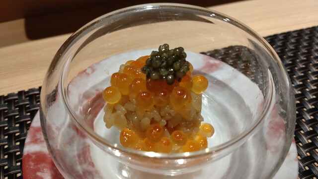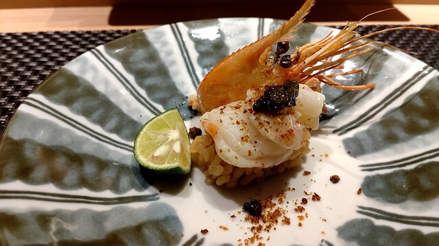 〆にぼたんえび、白子、いか雲丹のせを追加♪