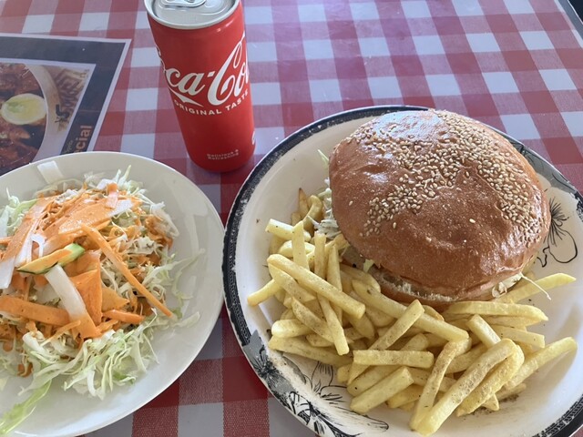 サラダ、ポテト、コカコーラつき。