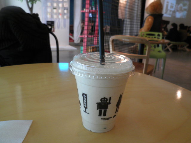 そして、豆腐シェイクも注文。豆乳よりもどろっとしていたので、豆乳シェイクではなく豆腐シェイクなのだと納得。こちらは健康によさそうだと思ったのですが、飲んでいるうちにとても甘く感じてしまい・・・バナナの甘さも強かったです。