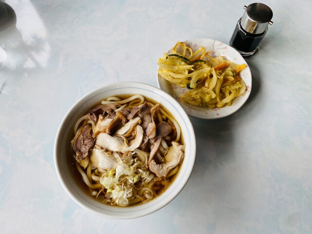 体もぽかぽかでお腹も満足。硬めの親鶏が苦手な方も、月見に天ぷらを付ければ、十分と美味しく頂けます。美味しかったです。
