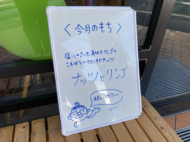 さて、一番気になる今月のもちが、ナッツとりんご。もはや、もちに付けるような名前ではないものですが、メニューに出すくらいなので大丈夫なはず。説明によれば、塩味のきいた角切リンゴと香ばしいクランチドナッツをまぶしたものだそう。もう、見たまんま、もちにナッツが振りかけられており、その上にあるのが角切リンゴ。意を決して、箸で餅を摘まんでみると、案の定、リンゴとナッツがぼろぼろと落ちてこぼれていく。それでも残ったものをそのままに、一口で口の中へ放る。もにゅもにゅとカリカリ、シャリシャリが混在する、不可思議な食感と味わい。これを旨いと言うよりも楽しい。でも、異国の人には受けそう。彼らはナッツさえあればハッピーになれそうな気がする。もしかして、これが異文化餅交流における成果の品なのだろうか。