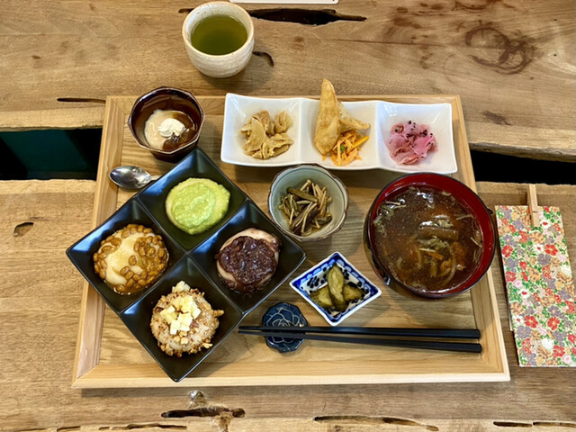 漬物、小鉢もパクパクと頂き、三点盛の品も、少し変わってる。揚げ餃子的なものの中身はポテトカレーのよう。どこか日本的であり、異国の香りがするような口当たりを感じたところ。まるっきり和の品で収めようとしていないのも面白い。