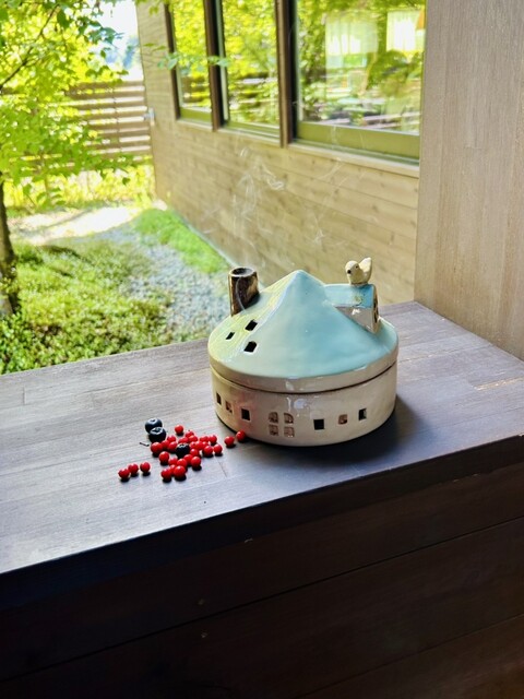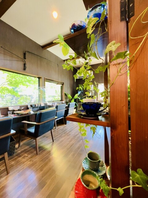 秋晴れの中、駐車場へと車を入れお店へと向かいます。カワイイ木造店舗。扉を引いて中へ入ると、鼻をくすぐるお香の香り。窓際で、お香が焚かれており、女性が好む細やかなムードあるお出迎え。