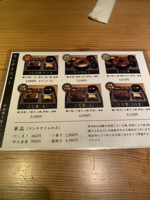 いつも注文するのは、ランチタイム限定の「うな重(上)」4,378円。