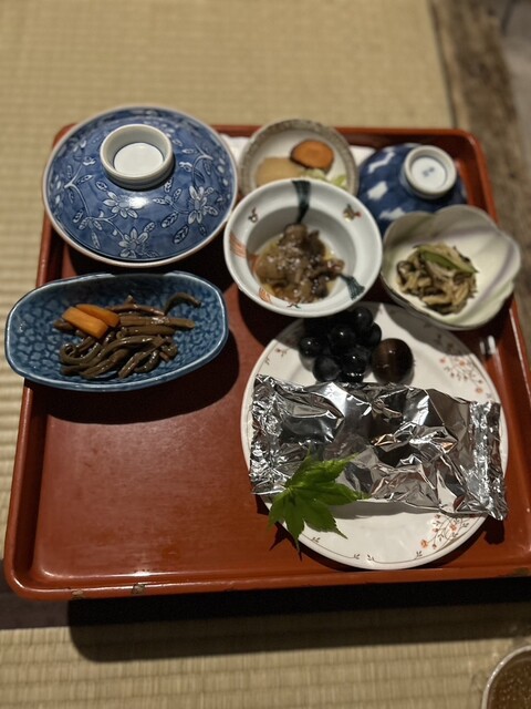 岩魚の塩焼きや山菜の煮びたし、そして名物“山の芋鍋”が膳に並ぶと、ひとつひとつに宿の心意気がにじみ出る。