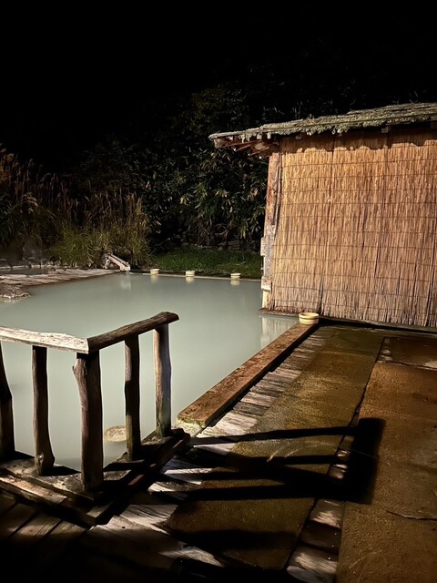 特に混浴露天風呂は鶴の湯の代名詞であり、湯けむりの向こうに望む茅葺き屋根と朽ちかけた木柵が、人工物であることを一瞬忘れさせるような風情を醸している